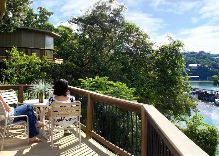 Positioned on the enchanting shores of Lake Travis, the serene Lakefront Bungalow offers an idyllic retreat for those seeking relaxation alongside stunning waterfront views. This charming property is designed for comfort, boasting a spacious patio that seamlessly connects indoor and outdoor living, inviting guests to unwind while taking in the picturesque lake vistas.